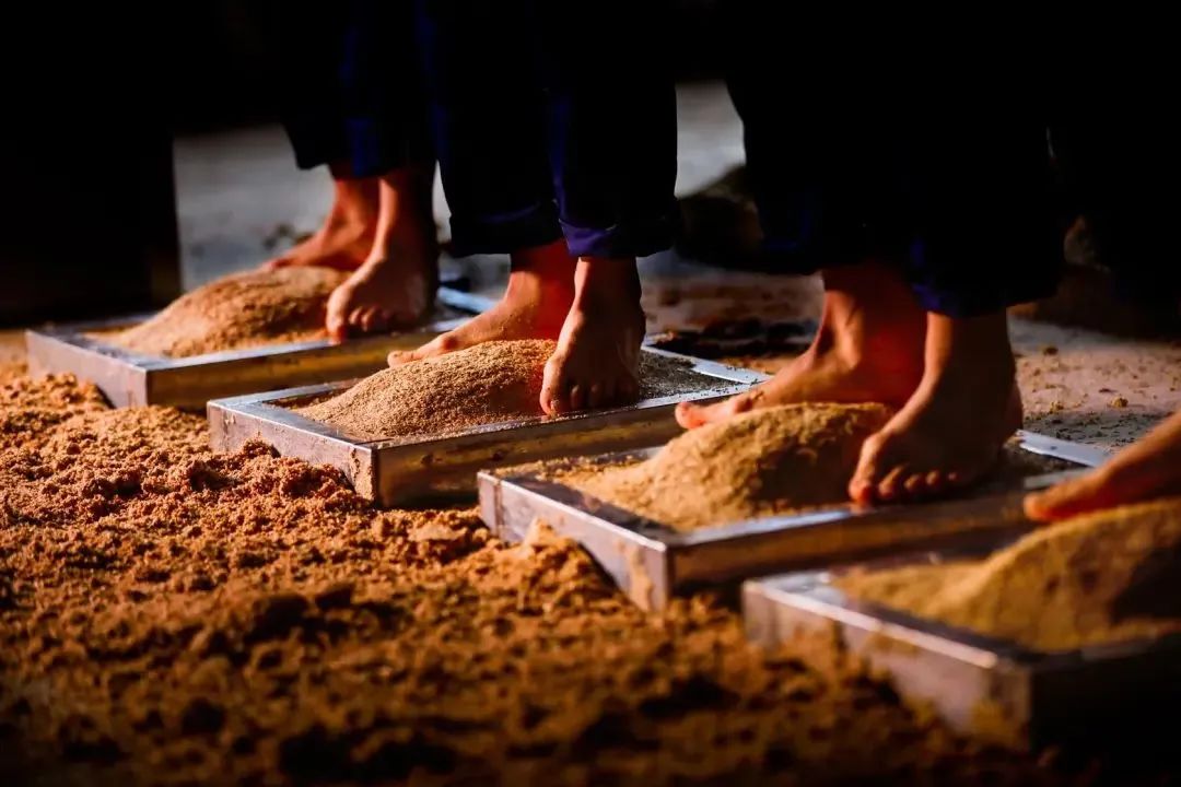 酱酒工艺有“三高三长,一大一多”的特点,即高温制曲、高温堆积、高温馏酒,制曲时间长、酿造周期长、储酒时间长,用曲量大,发酵取酒轮次多。